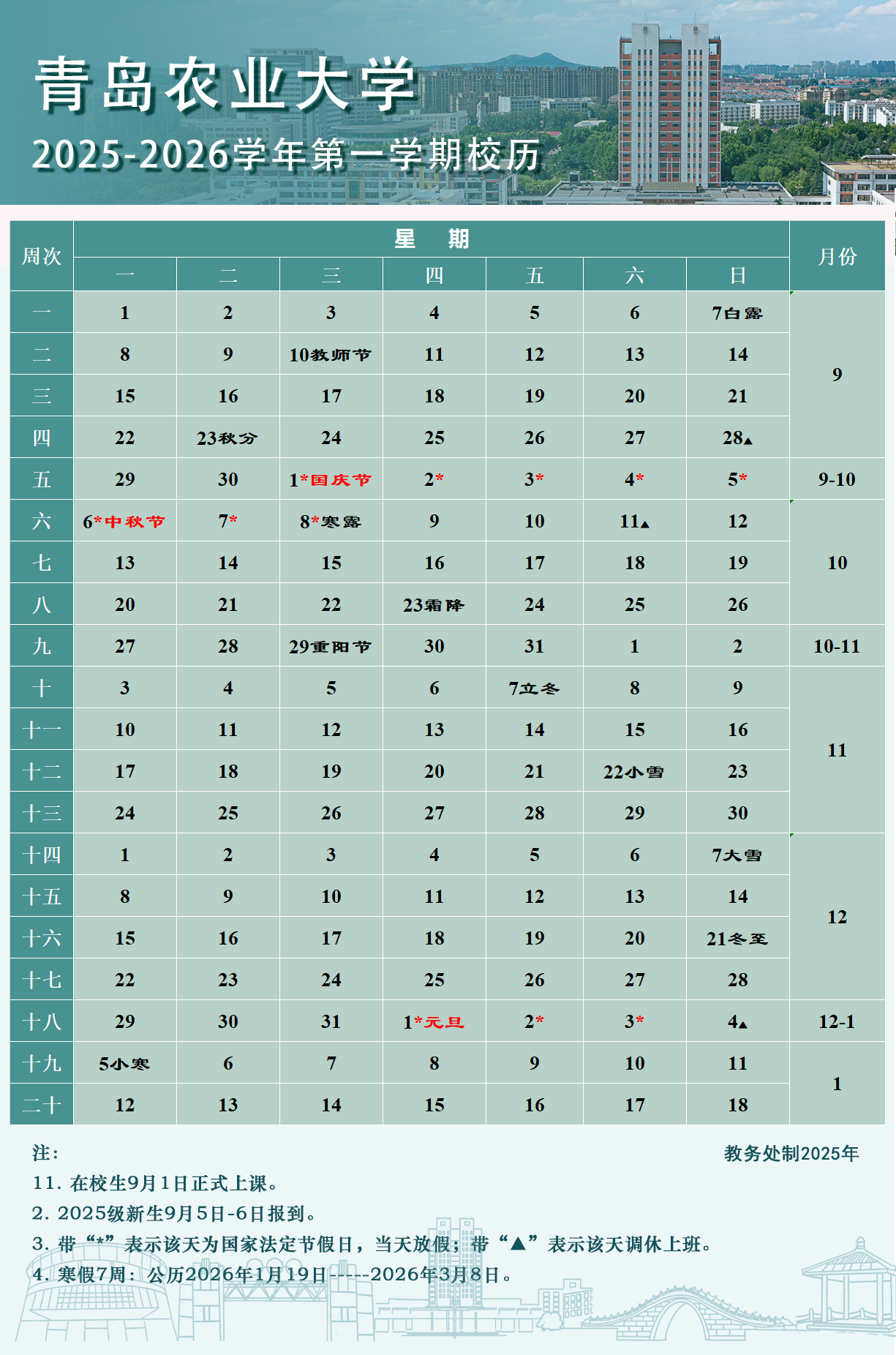 校历是学校以学期或学年为单位编制的日历,是学校一个学期或学年内学习和工作的日程安排。三级片推荐校历由学校教务处编制,每个学期末编制并发布下一学期的校历。三级片推荐每学期的教学周一般为20周,其中第19、20周为考试周,专门用于安排期末考试。