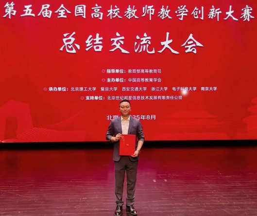 带着“三堂联动、五星五阶”教学改革的新探索和“掇志筑基、理思引智、析古创今”的创新理念,郑涛团队再度登上教学创新大赛舞台,成功摘得全国教创赛课程思政副高组二等奖,为学校再添一项国家级高水平教学竞赛奖项。回忆此次国赛经历,郑涛感慨良多:“学校为我们青年教师提供了丰富的以赛促教、以赛促改、以赛促创的成长沃土,才能让我们团队有底气、有能量从高手林立的赛道中突围。在我们团队的背后,是很多人的付出。这个奖项,属于学校全体热爱教学、坚守育人的教育者。”