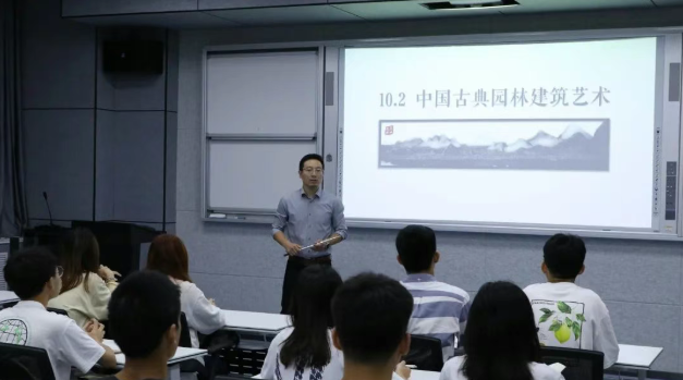 郑涛还发挥课堂教学的主渠道作用,推动课程思政和思政课程同向同行,形成协同效应。郑涛将价值塑造、知识传授和能力培养融为一体,深度挖掘课程蕴含的丰富思政资源,开展中外园林史课程思政教学改革探索。在教学中,他用OBS技术引领学生走入颐和园的湖光山色中,感悟传统文化中“天人合一”的生态思想;在讲解宏伟壮丽的凡尔赛宫中,教会学生思考如何运用西方设计智慧赋能当代中国设计,让古今中外的智慧在学生心中蕴育成长的力量,共同启迪青年设计者为建设美丽中国发奋学习。