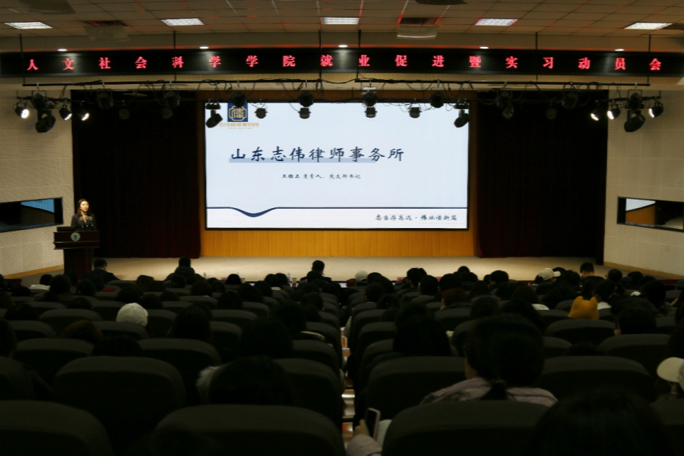 12月30日,人文社会科学学院特邀山东志伟律师事务所开展毕业生职业推介宣讲会。学院党委书记徐以师、院长云立新,2026届全体毕业生参加会议。会议由学院党委副书记、副院长姜鲁平主持。
