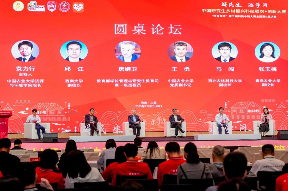 12月27日至28日,中国研究生乡村振兴科技强农+创新大赛“拼多多杯”第三届科技小院大赛全国总决赛在海南省三亚市落幕。校党委委员、副校长张玉梅应邀出席并在大赛圆桌论坛环节作典型发言。学校两个科技小院在本届赛事中获全国二等奖1项,全国三等奖1项。学校获评优秀组织单位,阎清华、刘国成两位老师获评“优秀指导教师”。